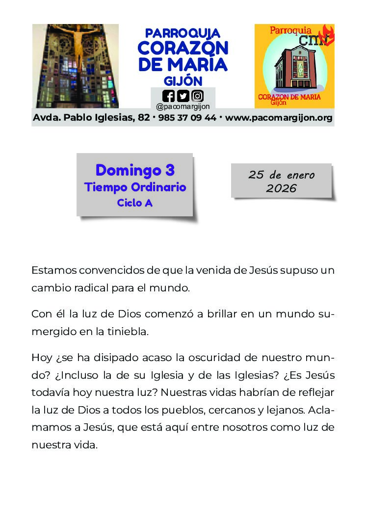 HORARIO DE INVIERNO, de MISAS y de SECRETARÍA.