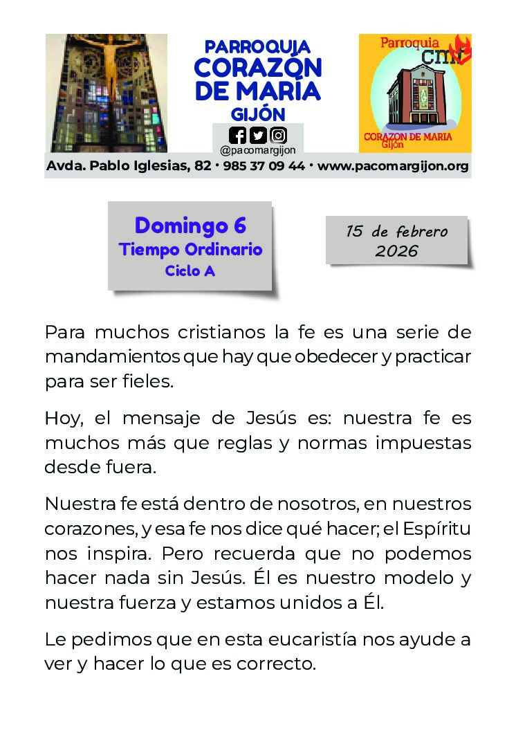 HORARIO DE INVIERNO, de MISAS y de SECRETARÍA.
