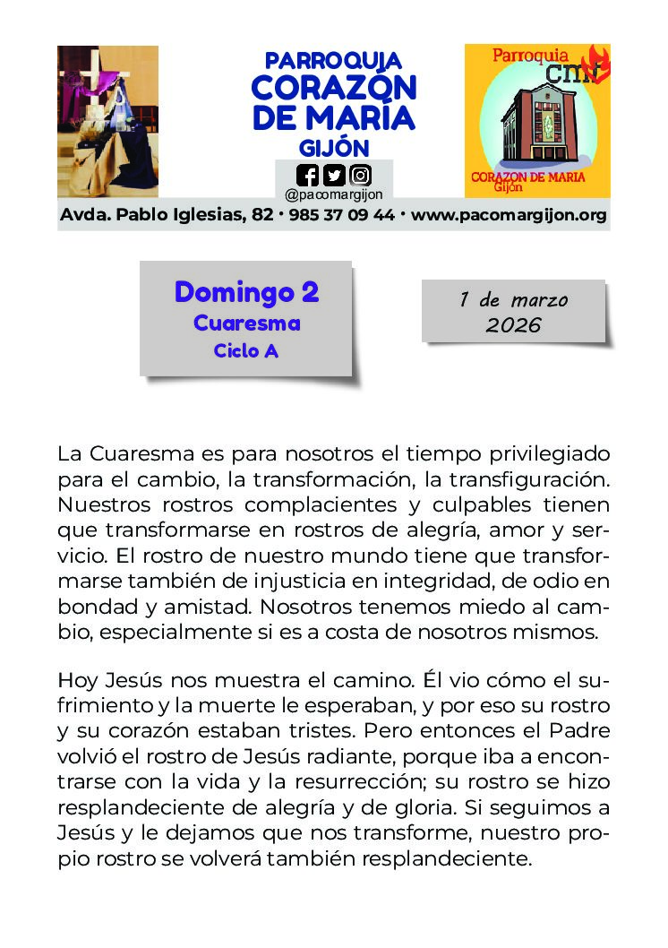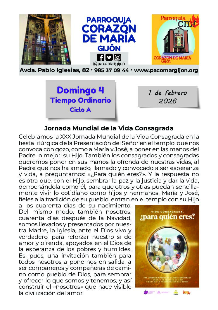 HORARIO DE INVIERNO, de MISAS y de SECRETARÍA.